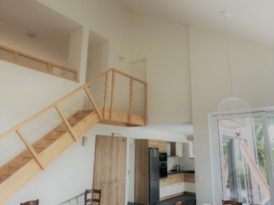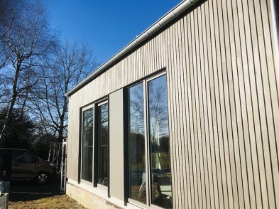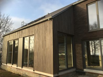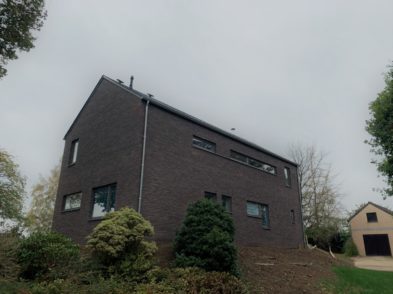 Caractéristiques Architecte : Bureau Jaspard – David Deschambre Matériaux : Structure en épicéa Isolation en cellulose Bardage en cèdre grisé ajouré & briques sans joint Couverture en ardoises artificielles Verrière avec combinaison de Velux Catégorie : Maisons et extensions