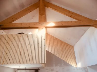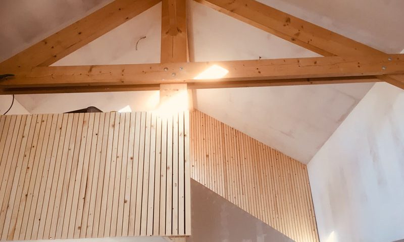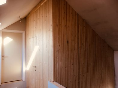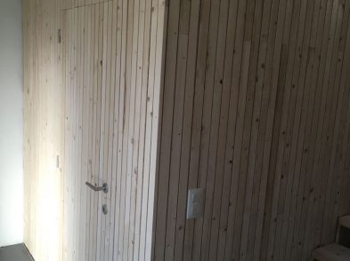 Caractéristiques Architecte : Arearchitects – Cédric Ricco Matériaux : Lambris ajouré en épicéa Porte à peindre bardée en épicea ajouré Catégorie : Aménagements intérieurs