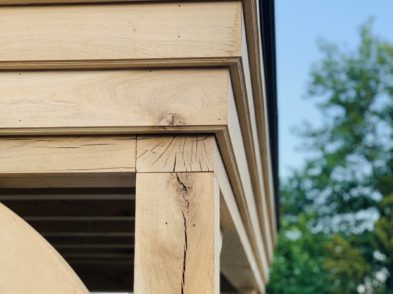 Caractéristiques Matériaux : Structure en chêne local Plancher en chêne Couverture en EPDM 3D Couvre-mur en alu noir Châssis en PVC Deceuninck Bardage en chêne local Catégorie : Aménagements extérieurs